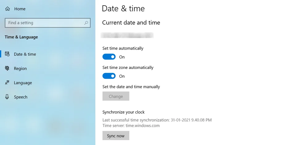 Windows 10 Ayarları uygulamasına girebilir ve bunu düzeltmek için otomatik zaman seçeneğini etkinleştirebilirsiniz. Bunu bir PC’de şu şekilde yapabilirsiniz: