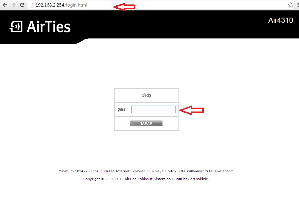 Bilgisayarınızdan bir wep tarayıcısı açıp adres satırına 192.168.2.254 yazarak Enter’e tuşlayalım.