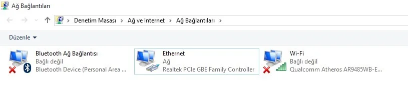 Sonra ethernet ağ arayüzü üzerine sağ tıklayarak özellikler diyelim.