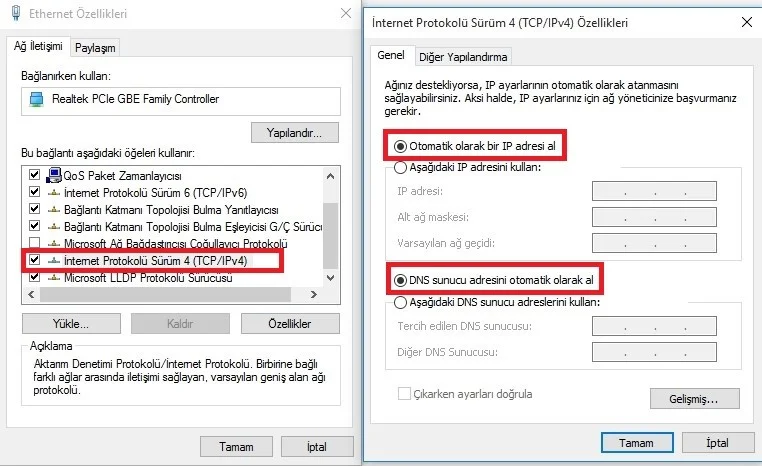 Sonra internet protokolü sürüm 4 üzerine çift tıklayalım.