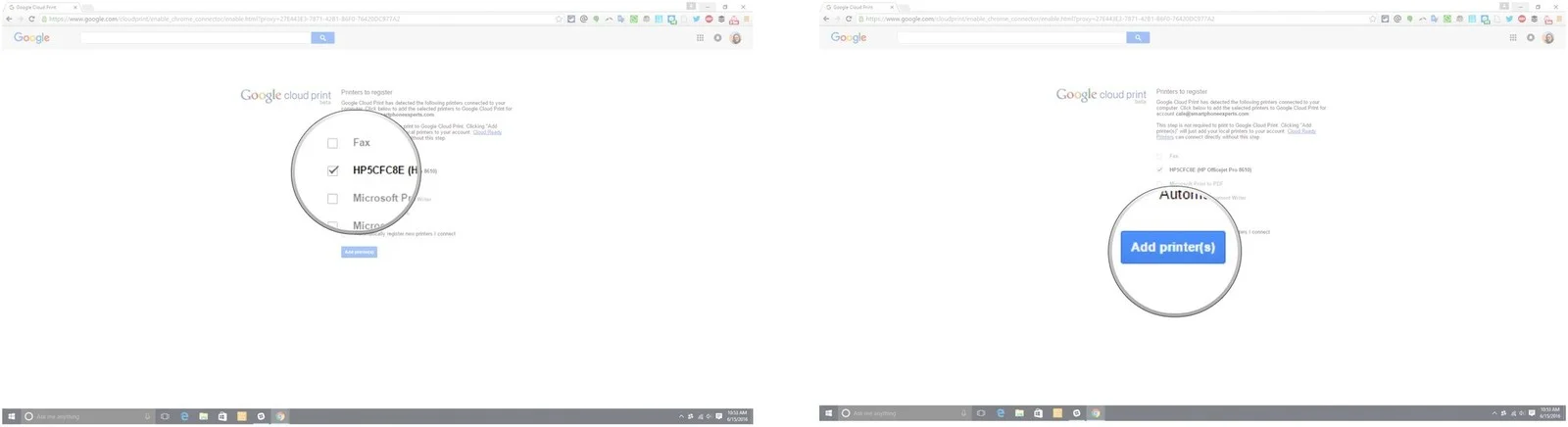 - Google Cloud Print’e eklenmesini istediğiniz yazıcıları seçin.