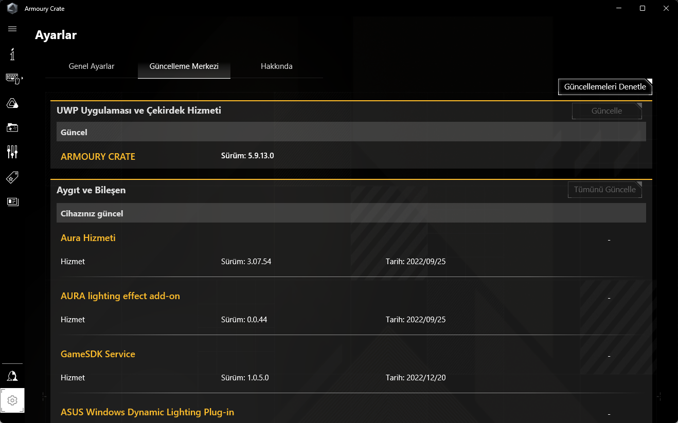 Eğer ASUS Armoury Crate açılabiliyorsa, ilk adım olarak yazılımın güncel olduğundan emin olun. Yazılımın eski bir sürümü, çeşitli hatalarla karşılaşmanıza neden olabilir.