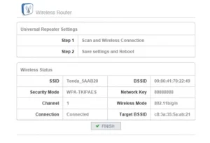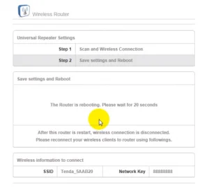 Bu şekilde iki cihaz arasında kablolu bağlantı sağlamadan kablosuz güçlendirici olarak kurulumunu tamamlamış oldunuz.