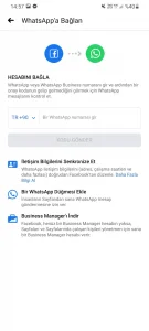 WhatsApp numarası ekle kısmına tıklıyoruz , bu işlem için telefonunuzda Business Manager uygulamasının da yüklü olması gerekiyor.