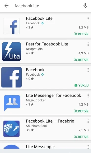 - Arama sonuçlarında en üste çıkan Facebook Lite uygulamasına dokunup, açılan sayfada “Yükle” butonuna dokunuyoruz.