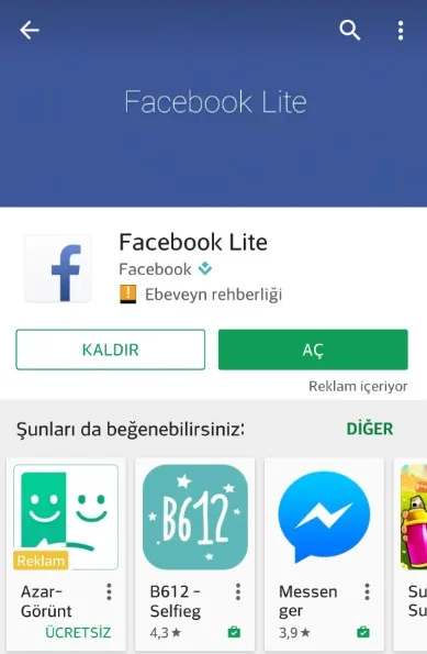 - ve “Aç” butonunu gördüğünüzde uygulamanın cihazınıza kurulumunu tamamlamış olacaksınız. İndirdiğiniz uygulamayı artık, internet erişiminizin ve kotanızın/paketinizin kısıtlı olduğu ve internet hızınızın yavaş olduğu durumlarda, Facebook hesabınıza girmek için kullanabilirsiniz.
