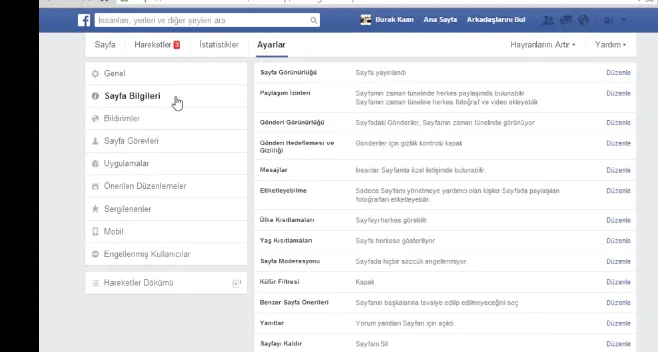 • Daha sonra açılan pencerenin sol tarafında yeralan menülerde Sayfa bilgileri kısmına tıklıyoruz.