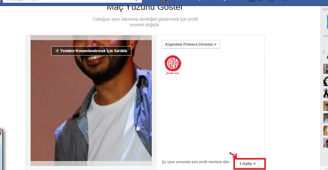Facebook profil resminin alt kısmında desteklemiş olduğunuz takımın logosunun görünmesi için ;