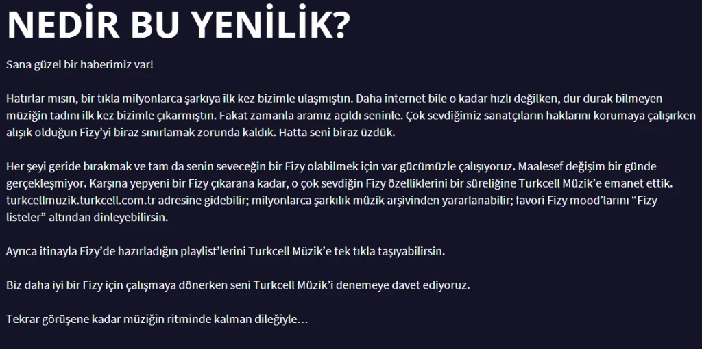 Şu anda yenilenme aşamasında olan fizy’nin Turkcell ile de iş ortaklığı bulunuyor.