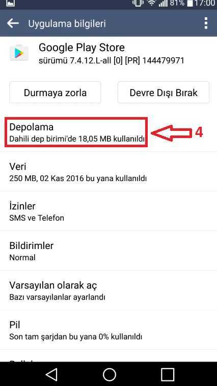 - Google Play Store alt menülerinden ise Depolama bölümüne giriyoruz.