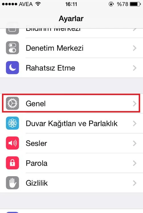 Ayarlar menüsünden ise “Genel” bölümüne giriyoruz.
