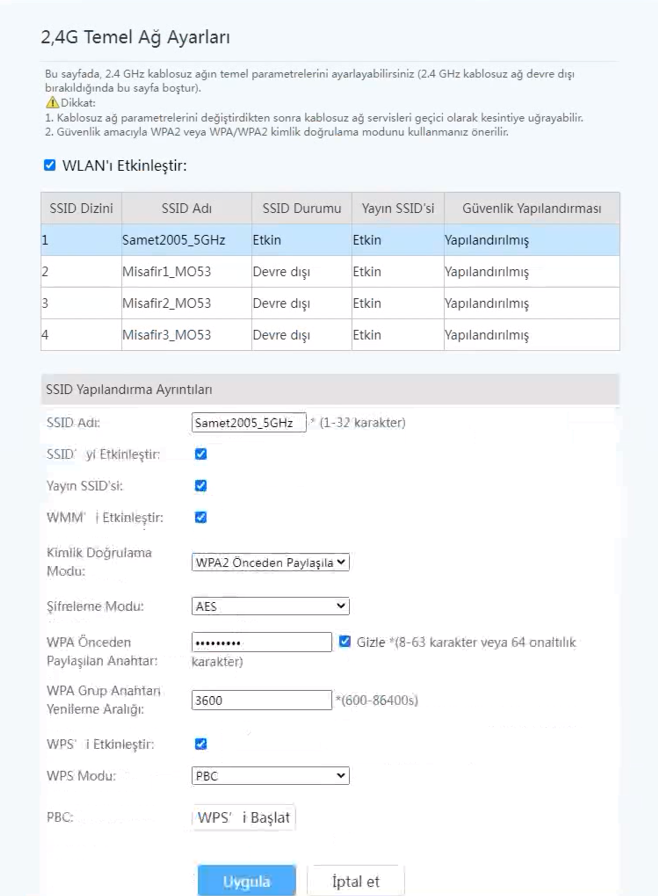 5 GHz Temel bandında da ağ adınızı ve şifrenizi değiştirebilirsiniz. Bu bandın sağladığı daha yüksek hız sayesinde, özellikle büyük dosyaların aktarımında ya da video akışı sırasında daha verimli bir performans elde edersiniz. Şifrenizi düzenlerken güvenlik açısından karmaşık ve güçlü bir şifre tercih etmeniz önerilir.