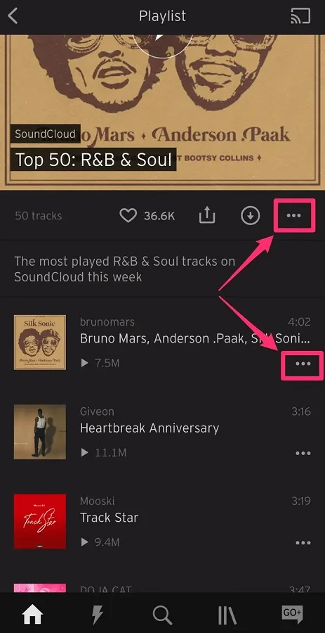 - Şarkı, albüm veya çalma listesindeki üç nokta (⋮) simgesine dokunun.