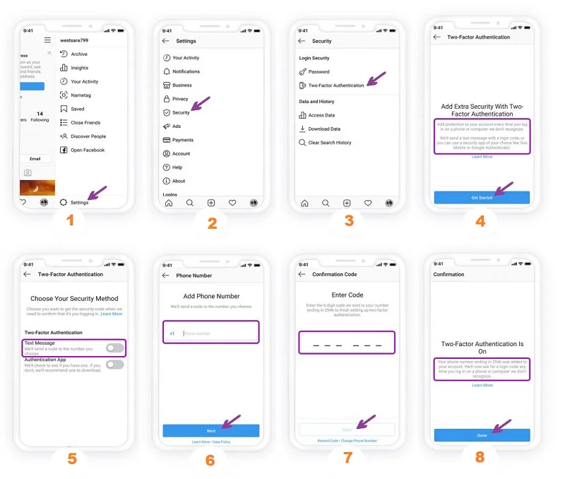 İnstagram’ın kendisi tarafından sağlanan bu tür endişelere harika bir çözüm, hesap için Instagram İki Faktörlü Kimlik Doğrulama veya 2 adımlı doğrulama ayarlamaktır.