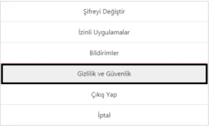 3) Hemen ardından Açılan ekrandan Gizlilik ve Güvenlik seçeneğine tıklayalım.