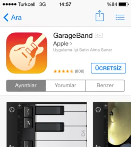 2) İlk olarak GarageBand Uygulamasını telefonumuza indirelim.
