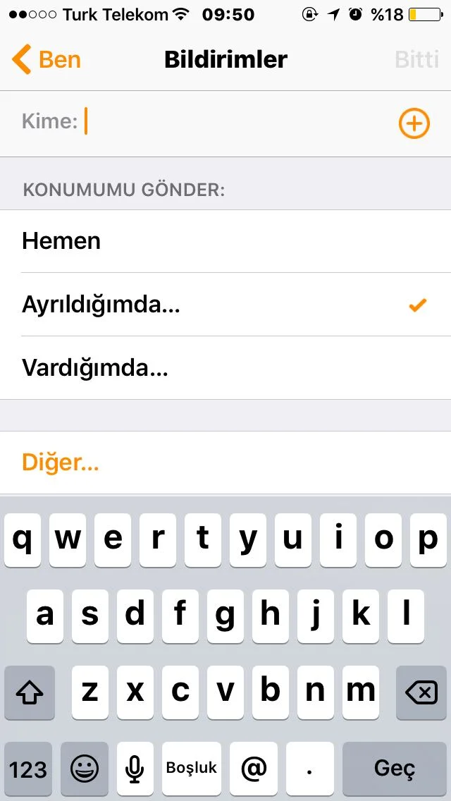 • Arkadaşlarına Bildir menüsünden, arkadaşlarınızla konumunuzu paylaşabilirsiniz.