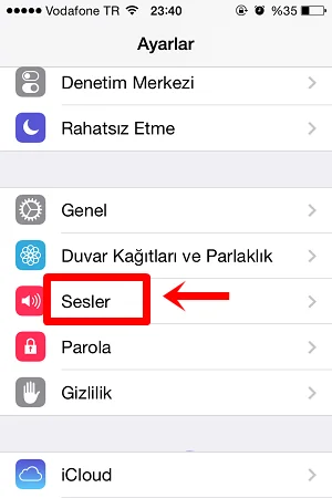 iPhone cihazınızda titreşimi aktif hale getirmek için uygulamalar menüsünden Ayarlar‘a gidiniz. Daha sonra ise Sesler’e dokununuz.
