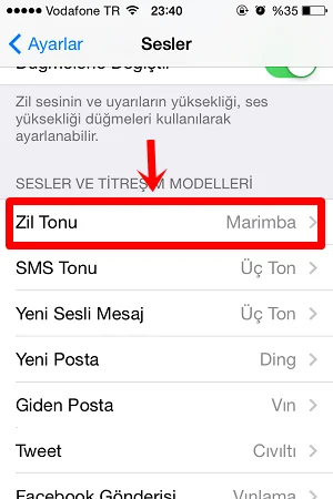 Hemen ardından açılan ekranda yer alan Zil tonuna dokunalım. Böylece zil tonu bölümü genişleyecektir.