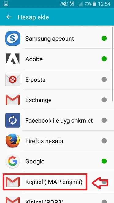 - Açılan sayfada hesap türleri vardır; bu seçeneklerden (Gmail) Kişisel (IMAP erişimi) vardır, bu seçeneğe tıklayalım ve ve açılan sayfada Gmail hesap bilgilerinizi girerek e-posta kurulumu yapabilirsiniz.