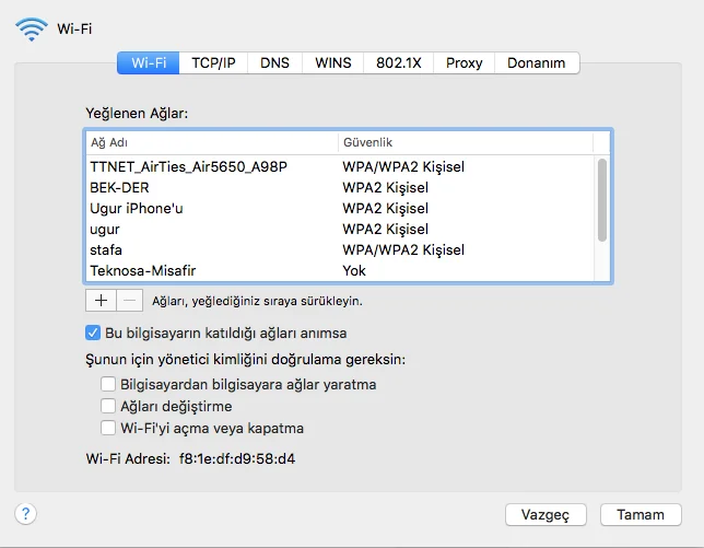 Açılan ekranda en altta Wi-Fi Adresi yani kablosuz ağ adaptörünün MAC adresi bulunuyor. Tabi bunların yanı sıra buradan cihazımızın DNS, IP vb. ağ ayarlarını yeniden yapılandırabiliriz; istersek manuel IP ve/veya DNS vererek erişim konusundaki problemlerinizi giderebiliriz.