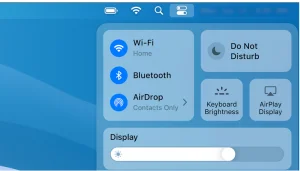 İstediğiniz öğenin menü çubuğunda görünmesini için öğeyi Denetim Merkezi’nden menü çubuğuna sürükleyebilir veya ayarlar menüsünde  öğeyi tıkladığınızda gelen ekranda alt bölümde yer alan menü çubuğunda göster bölümünü tıklayarak kolayca öğeyi görüntüleyip menü çubuğundan kullanabilirsiniz.