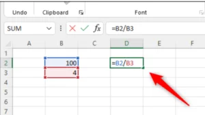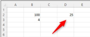 Birden çok hücrede verileriniz varsa, bölümü almak için boş bir hücreye basit bir formül girebilirsiniz. Örneğin, 100 B2 4 hücresinde ve B3 hücresinde olduğunu ve bu iki rakamın bölümünü istediğinizi varsayalım. Boş bir hücreye şunu girin: