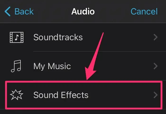 - Gelen ekranda Ses Efektleri (Sound Effects) seçeneğine dokunun.
