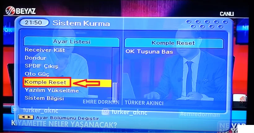 • ‘Bütün kanal ve sistem ayarları silinecek. Bu işleme devam etmek istiyor musun?’ onay penceresinde ‘OK – Evet’ butonuna tıklayalım.