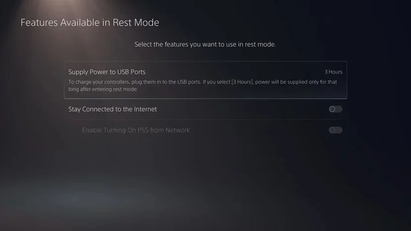 - Dinlenme Modunda Kullanılabilen Özellikler (Features Available in Rest Mode) seçeneğini seçin.
