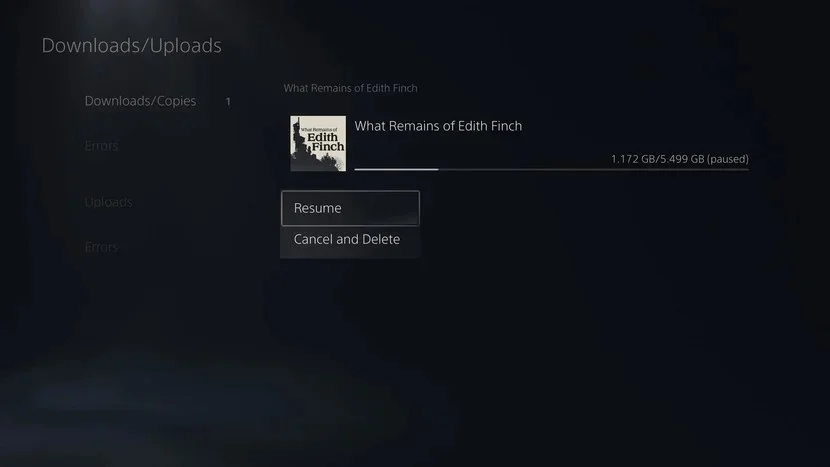 - İndirmeye devam etmek istediğiniz oyunu seçtikten sonra Devam Et (Resume) butonuna tıklayın.