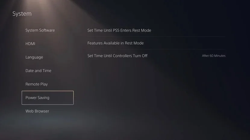 - Güç Tasarrufu (Power Saving) menüsünü seçin.