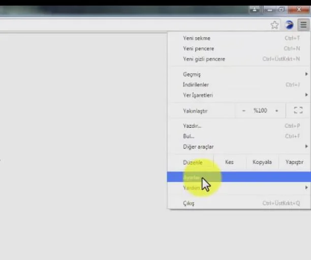 - Sayfamızın sağ üst bölümünde bulunan 3 (çizgi veya nokta) simgeli bölüme tıklayıp sonrasında açılan menülerden Ayarlar kısmına tıklayalım.
