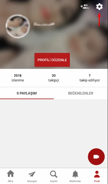 - Scorp hesap silme işlemi için öncelikle Profil seçeneğine ve daha sonra sağ üstköşedeki ayarlar sembolüne tıklayınız.