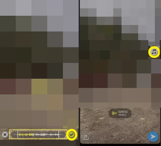 -Anlık önizlemenizde, isteğe bağlı olarak ekranın altındaki “Ses Zaman Çizelgesini” seçerek etrafına sürükleyin ve eklenecek sağ bölümü seçin, ardından onaylamak için onay işareti simgesine dokunun.
