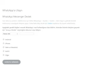 Diğer iletişim adresi: support@whatsapp.com