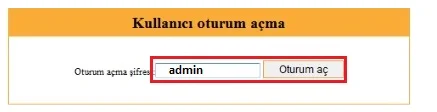 Açılan pencerede sizden cihaz arayüz Oturum açma şifresi (admin) istenecektir. Eğer şifre unutulmuş ise reset yapılarak fabrika ayarlarına alınmalıdır.