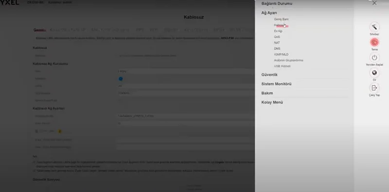 Türk Telekom Zyxel DX3200-B0 Kablosuz Şifre Değişikliği İçin Menüye Ulaşma