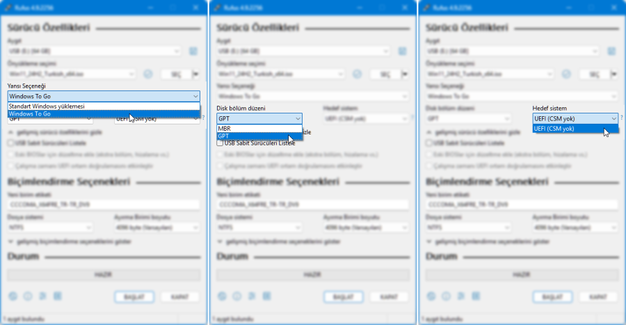 AnyWinGo (ücretli 25 $) veya Rufus programı. Ben bu makalede ücretsiz olması sebebiyle Rufus’u kullanacağım.