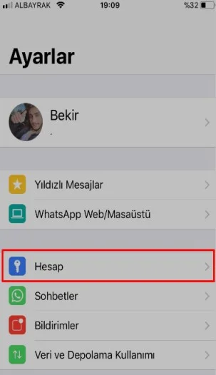 - Daha sonra WhatsApp’ta ‘Ayarlar’ bölümünden ‘Hesap’ menüsü tıklayalım.