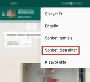 3) “Sohbeti dışa aktar” butonuna dokunun.