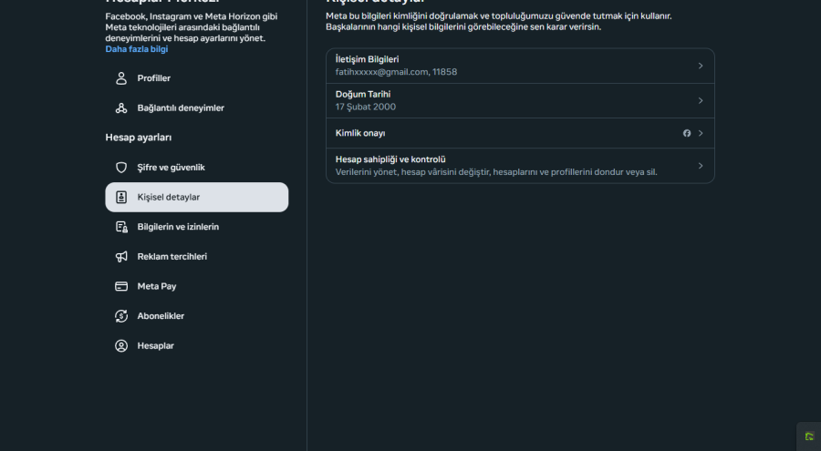 İlk adım Facebook hesabınızda doğum tarihi güncellemesi. WhatsApp içindeki Facebook butonuna dokunun. Profil simgesine girin. Ayarlar ikonunu seçin. Hesaplar Merkezi bölümüne ilerleyin. Meta hesap merkezi altında Kişisel detaylar var. Oradan Kişisel bilgiler‘e gidin. Doğum tarihi seçeneğini bulun.