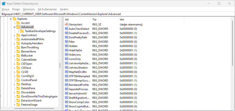 HKEY_CURRENT_USER\Software\Microsoft\Windows\CurrentVersion\Explorer\Advanced