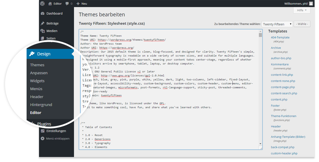 - Düzenlemek istediğiniz tema dosyasını seçin.