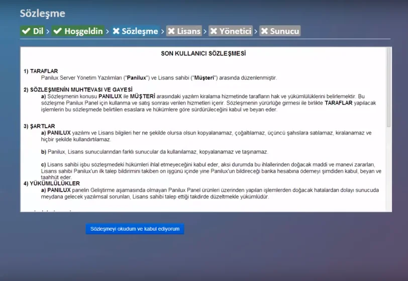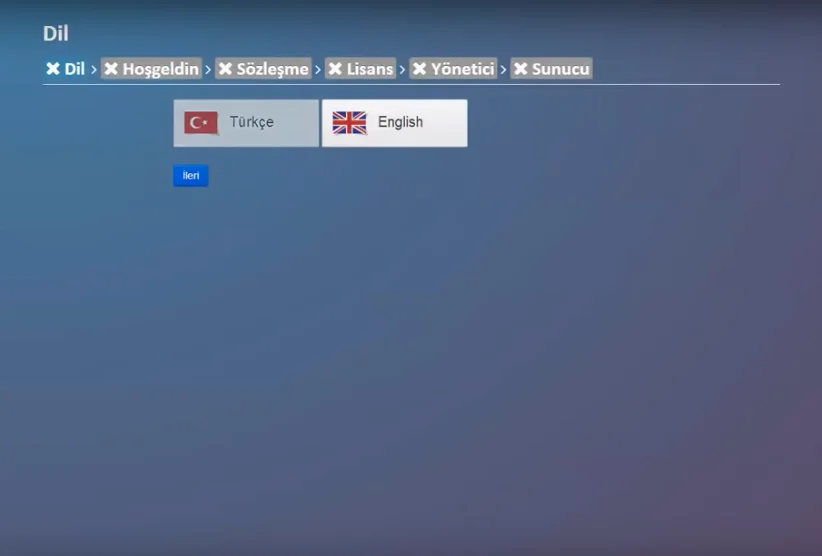Sistem yeniden başladıktan sonra Panilux kullanıma hazır olacaktır. Panele girmek için ise tarayıcınıza “https://IP_Adresiniz:1453” yazın. Açılan sayfa dil seçimi yapmamız isteniyor, dil seçip “İleri” butonuna tıklayın.