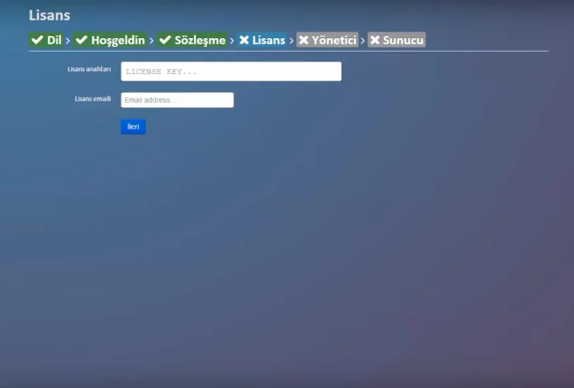 Lisan aşamasına geçtiğimizde ise burada lisans anahtarı ve e-posta adresi istiyor. Bunun için ise ücretsiz sürüm bile olsa https://www.panilux.com/account/?lang=tr adresine girip kayıt oluyorsunuz. Kayıt olduktan sonra gerekli bilgiler size verilecektir.