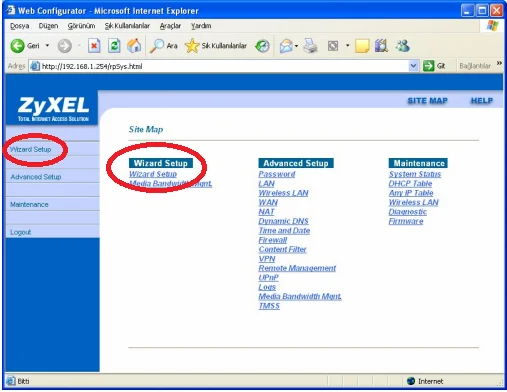 - Bu bölümü de geçtikten sonra karşımıza gelecek olan ekranda sol kısımda bulunan Wizard Setup kısmına tıklıyoruz.