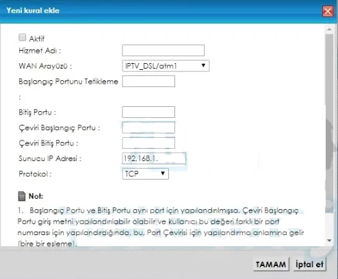 Buradaki durum bölümü Etkin olarak işaretli ise 4. Port LAN olarak çalışır, eğer Devre dışı olarak seçip uygula bölümünü tıklama yapar iseniz artı 4. Port WAN portu olarak değiştirilmiş olacaktır.